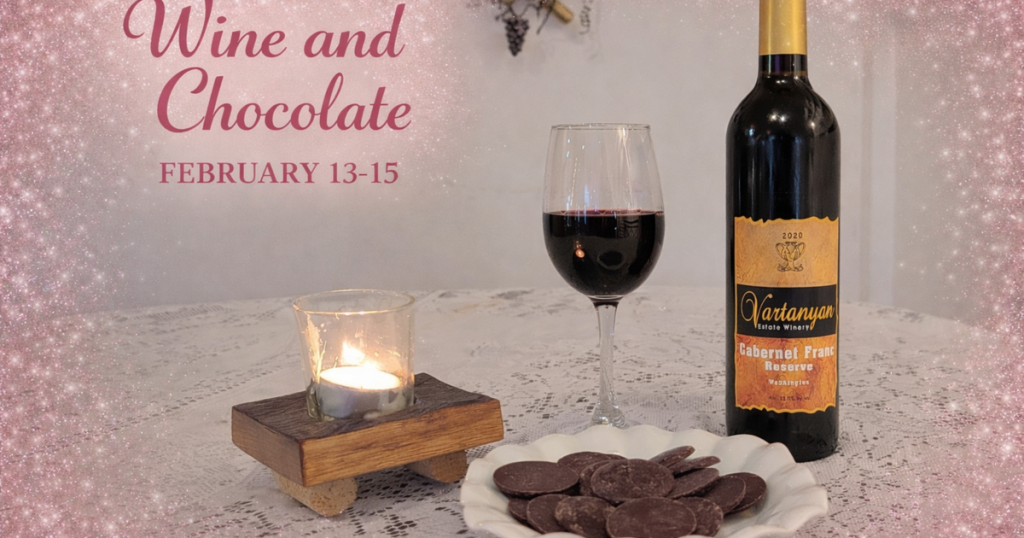 Join us for a Valentine’s Wine & Chocolate Tasting, Febr 13–15th — $18 per person.